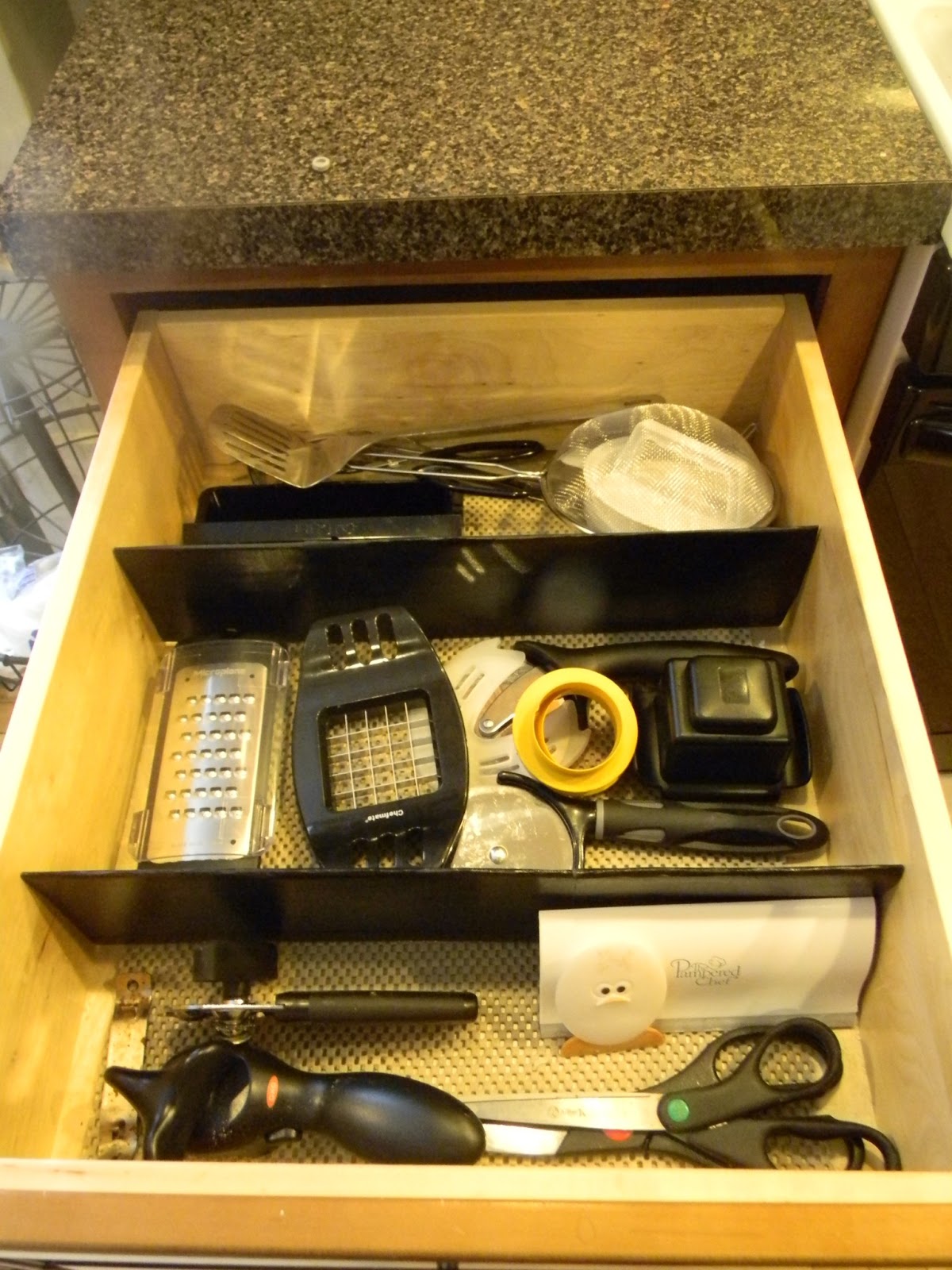 I stored my kitchen shears, can openers and counter scrapers in front..